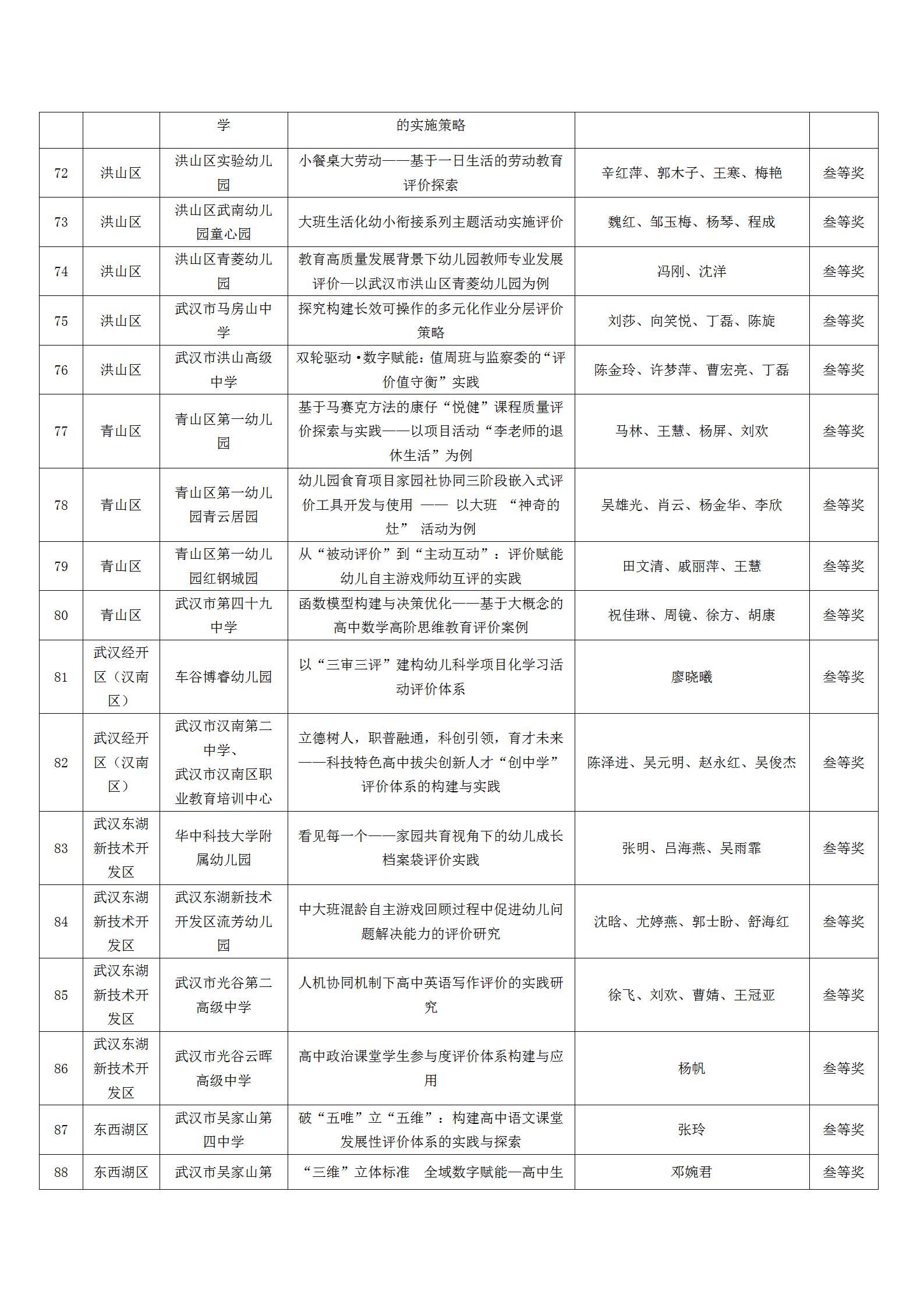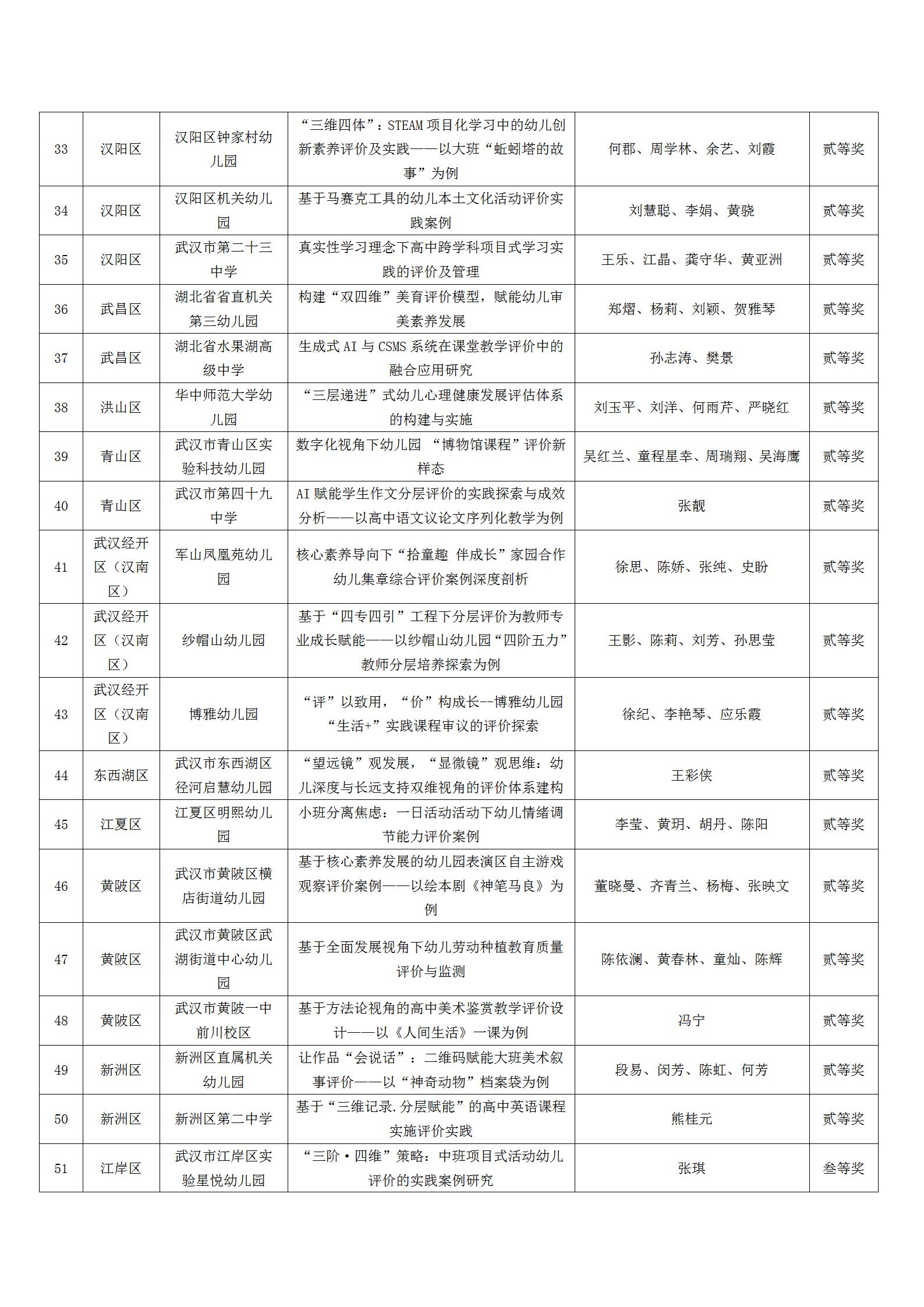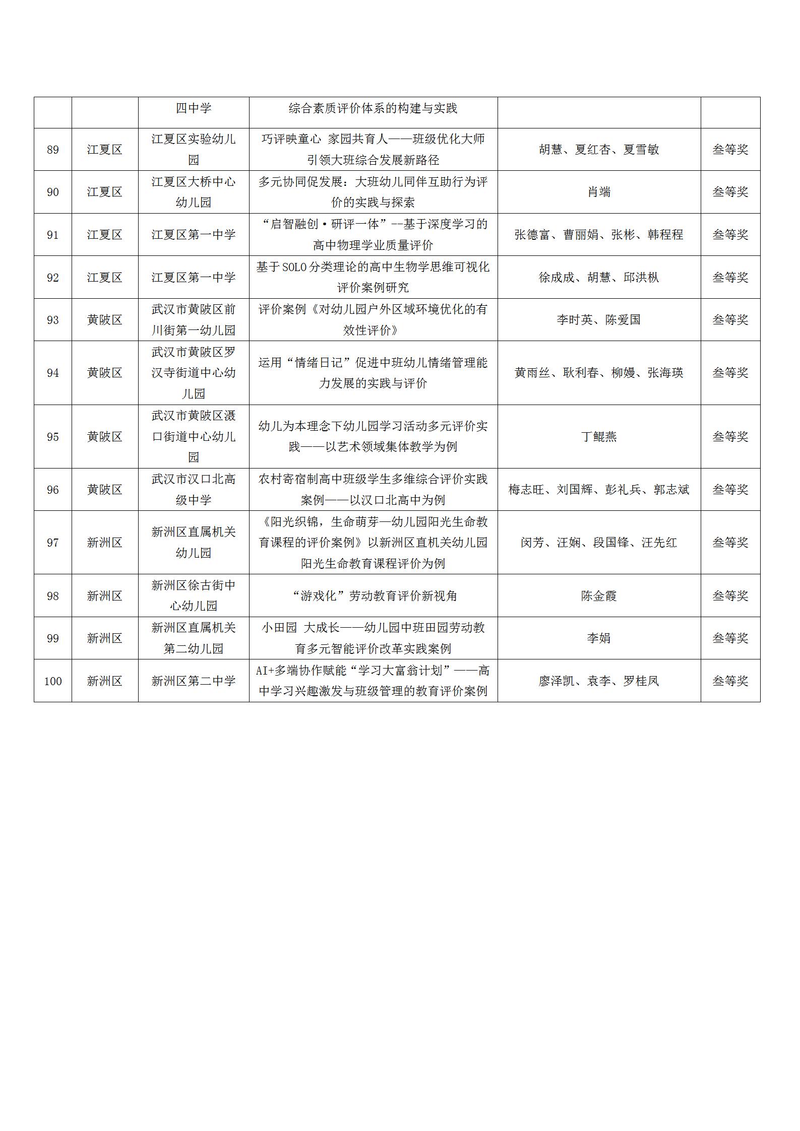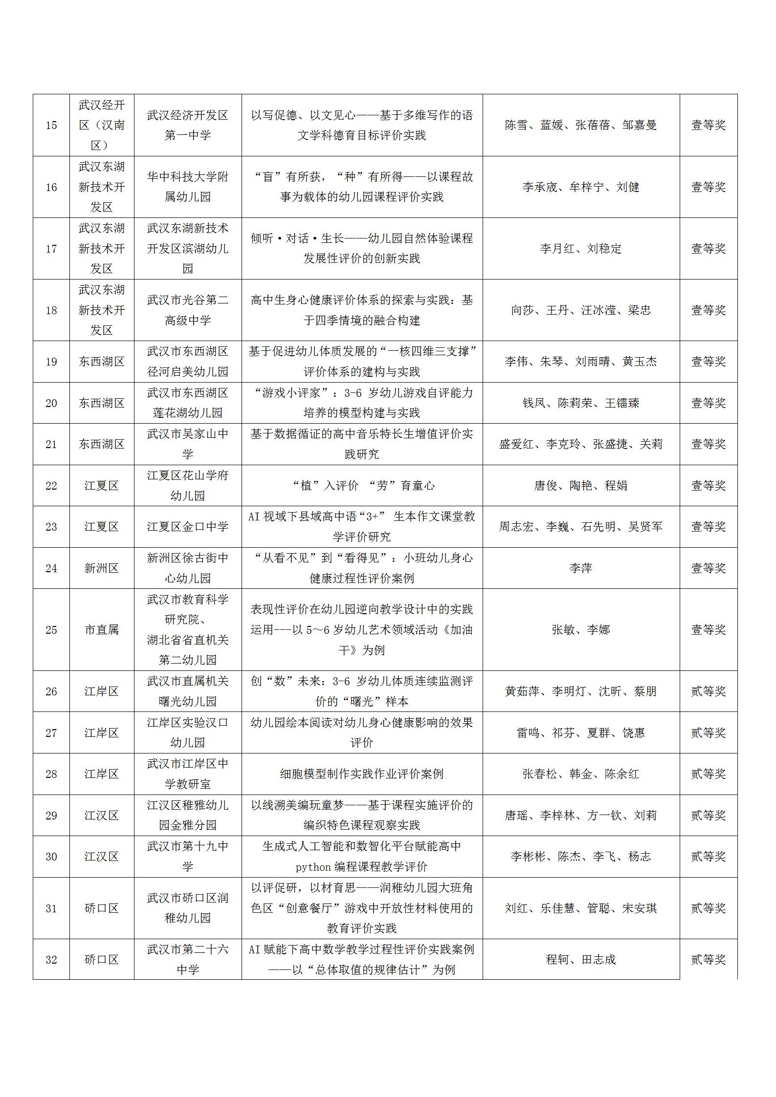 武汉市2025年基础教育(幼儿园、高中段)教育评价优秀案例获奖结果公示